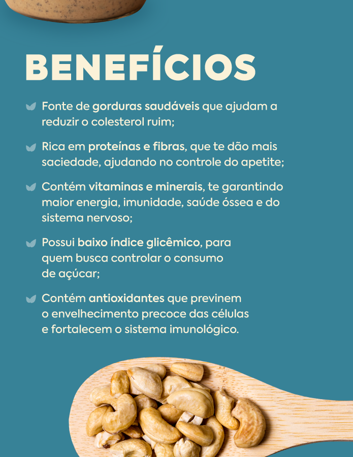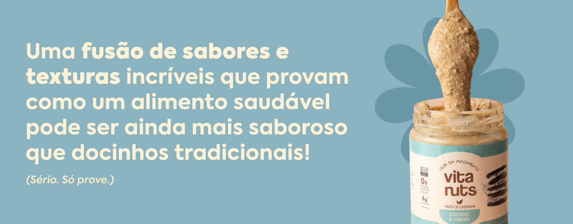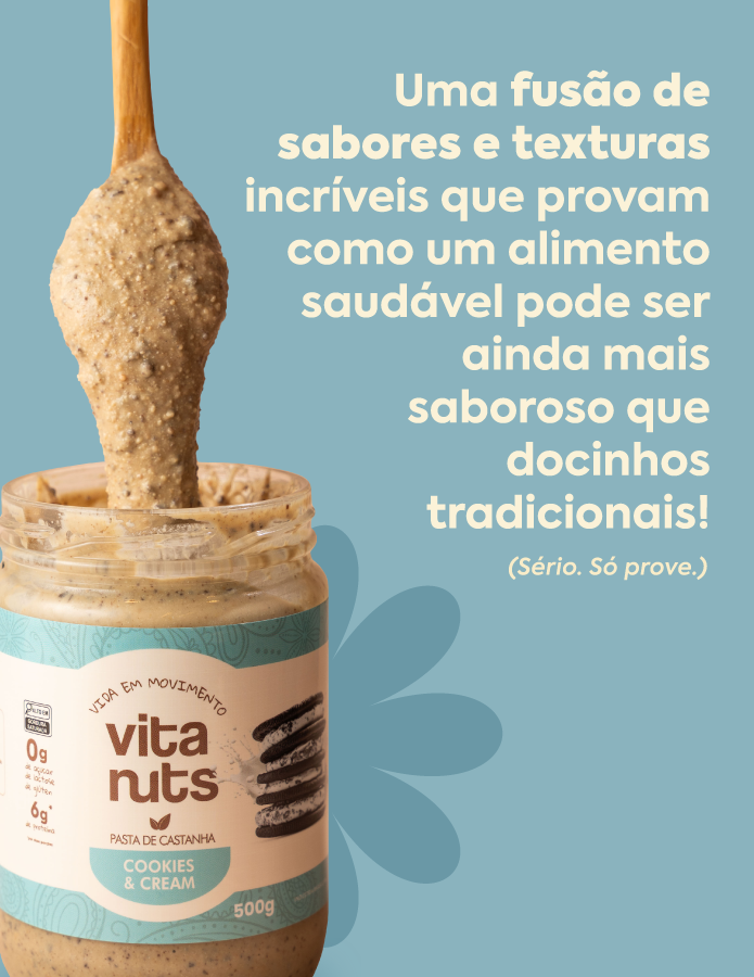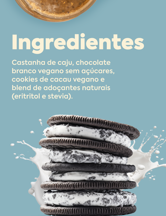 Você está prestes a experimentar uma pasta de cookies que vai mudar sua definição de "crocante"! Nós combinamos a paixão por castanhas, chocolate e cookies para criar uma mistura perfeita dentro de um pote. Não é à toa que nossa pasta de cookies é a preferida dos brasileiros, com colheradas seguidas de "QUE DELÍCIA". Essa aqui é a favorita dos apaixonados por doce, e fica incrível combinada a qualquer frutinha ou até em uma receita fit mais elaborada. Nada de açúcar, nada de lactose, só muito sabor e nutrição para seu corpo.