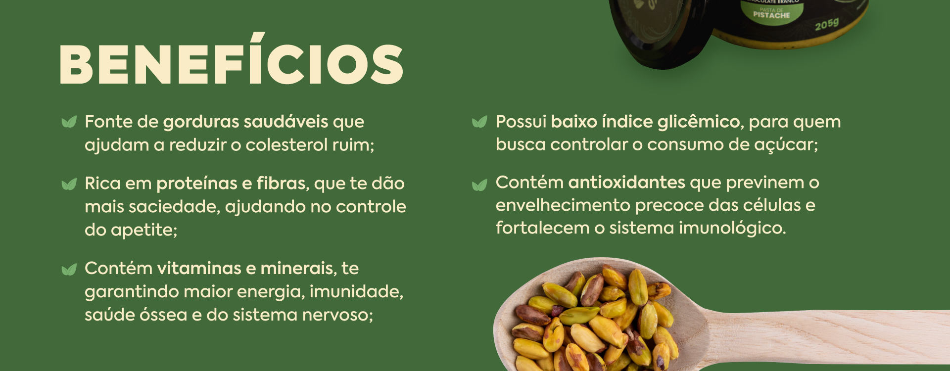 A cremosidade do pistache fresco com a suavidade e doçura do chocolate branco premium, criamos uma experiência gastronômica verdadeiramente excepcional, sem açúcar, sem lactose e sem conservantes.